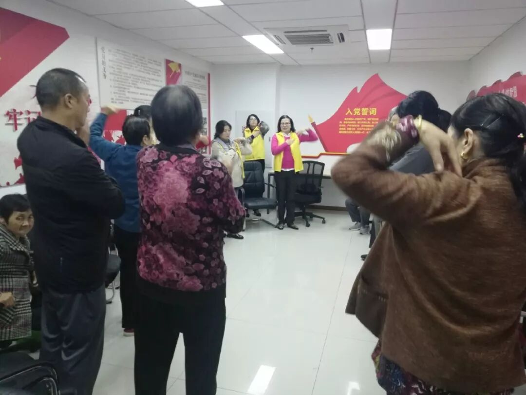 其中部分人由于做过手术,不能通过跑步等激烈的运动来锻炼身体,专家针对他们这样的情况,现场教了大家放松身体、调适压力的健身操,健身操简单易学,效果显著,现场演示和练习让大家都快速掌握方法。