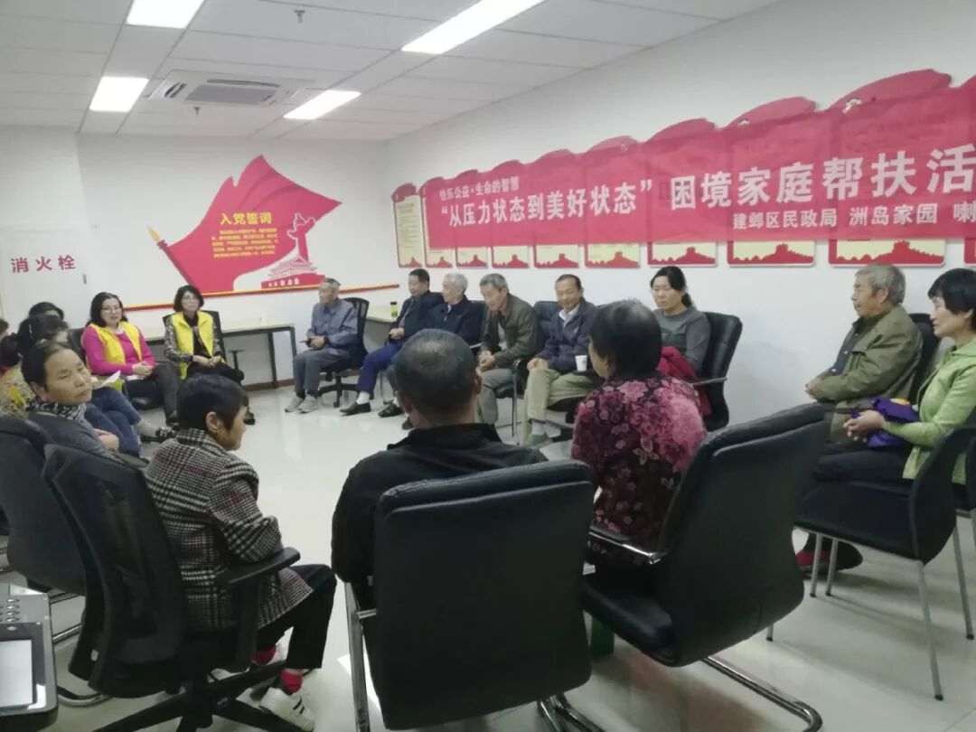 江心洲街道洲岛家园社区领导对20户重病、残疾、离异、高龄等困境家庭高度关注,针对他们精神压力大、身体健康状况差、因病致贫等困难情况,从多方面进行关爱。本次社区特别邀请“喇叭花”的专家杜岚老师和孙伟老师对处于困境状况的家庭进行人文关怀、心理疏导以及精神调适的帮扶。活动现场社区领导杨涛主任代表社区党委表达了对参加活动家庭的特别关切。