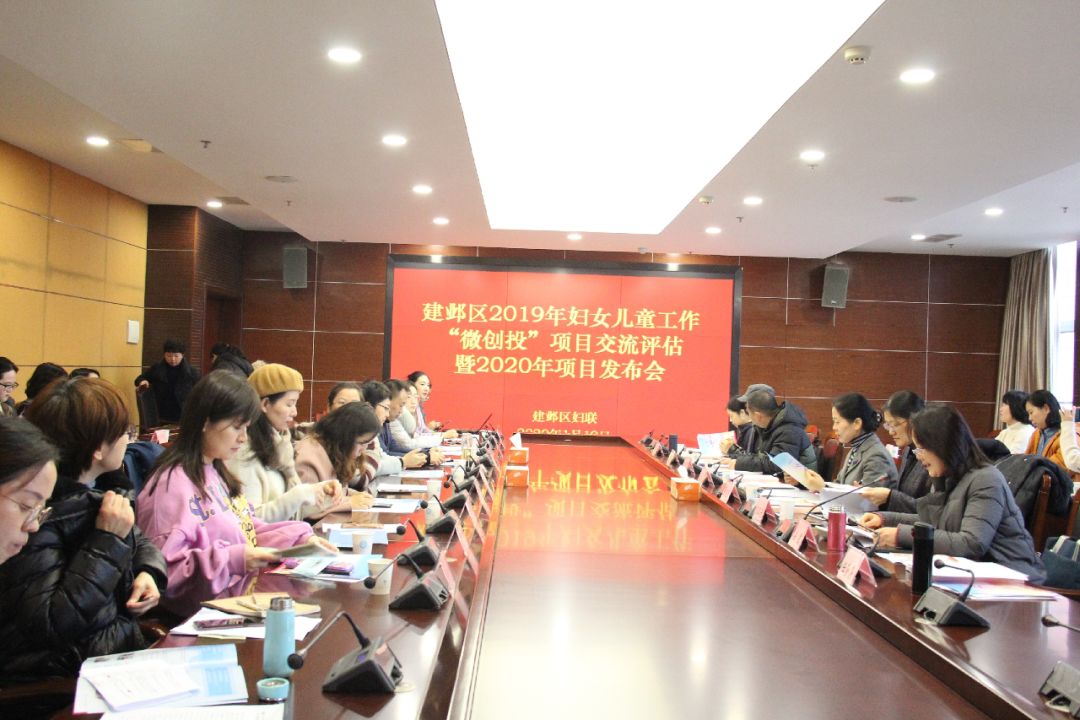 2020年1月19日上午,建邺区妇联组织召开南京市建邺区2019年妇女儿童工作“微创投”项目交流评估暨2020年项目发布会。出席本次会议的领导有建邺区委常委、副区长夏晓燕,建邺区妇联主席彭卫芳、副主席安鹰、兼职副主席任莎莎、区妇联相关科室负责人和各街道妇联负责人,南京大学社会学院和南京邮电大学社会与人口学院的学者教授也作为专家评委出席了本次会议。夏晓燕副区长做了重要讲话和工作指示。