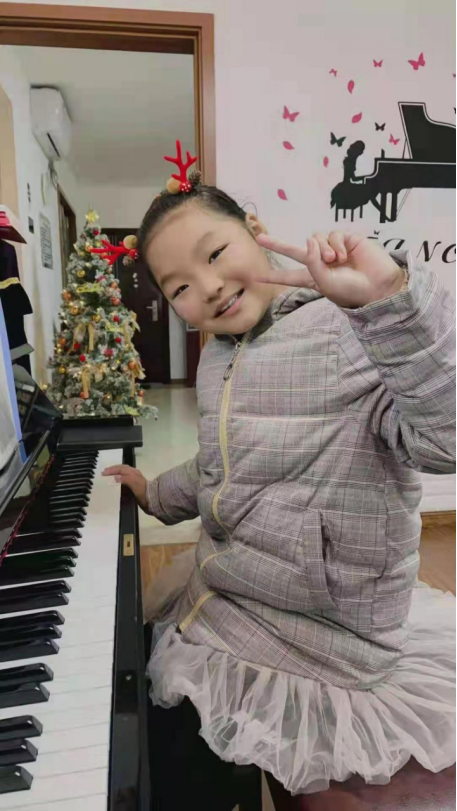 这位是漂亮可爱的小姐姐邹芯悦,不仅画画得好,还弹得一首好钢琴!让我们来看年她的画作吧!