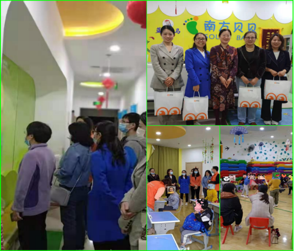 在现场,我们跟随着南方贝贝的人员参观了他们的活动场地,目睹了他们的日常工作模式。看见了不同处于自闭症的孩童的生活状态,他们或是和老师一起分辨颜色,或是在老师的协助下完成平衡木等有关的感统训练;南方贝贝设立了融合班级,将患有自闭症的孩童和正常的孩童放在一个班级,发动孩童的力量让自闭症的孩子感受到社会的温暖和爱意,他们和其他的孩子们一样拥有玩具和快乐,通过参与小朋友的游戏,我们感受到孩子们的简单快乐,还有老师们日常工作的辛苦和困难,比如看似简单的小事,老师们却要反复重复的训练孩子们!而这些正是喇叭花公益基金爱心基地成立的初衷,希望通过链接来自社会各界的支持网络,为这些孩子提供更全面专业的服务,为他们营造更轻松愉快的场所。