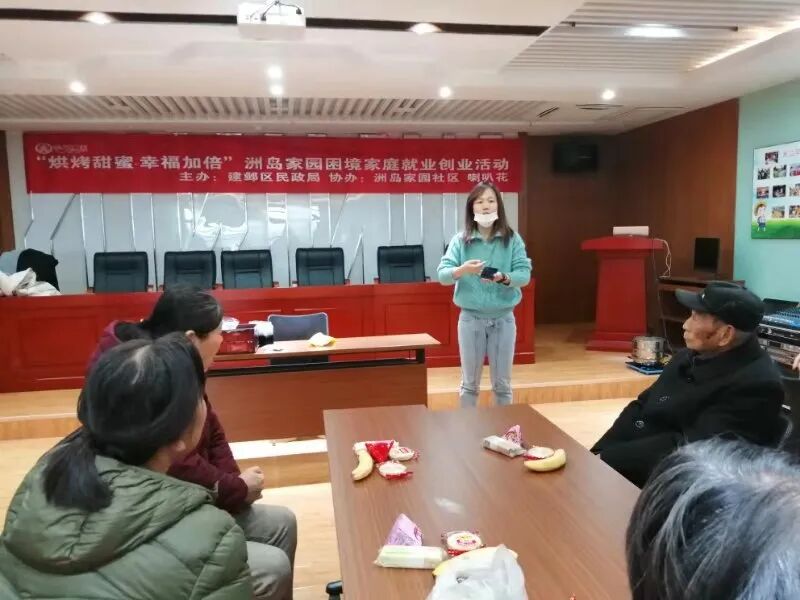 根据国务院关于加强职业培训促进就业的意见(国发〔2010〕36号) ,为了全方位帮助困境家庭,解决他们的生计难题,提高困境群体的就业能力,缓解困境家庭经济方面的困难,12月9日上午,由南京建邺喇叭花关爱儿童服务中心承办的建邺区民政局“快乐公益”项目—“生命的智慧”走进江心洲街道洲岛家园社区,组织了一场就业创业方面的职业技能培训,邀请烘焙方面的技师为困境家庭送来一堂职业技能培训课,现场教大家制作南京特色美食———桂花糕。